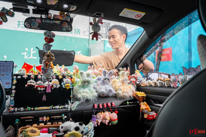 “哇哦,太好看了。”“这个车装饰也太漂亮了。”在成都街头,一辆车外贴满玩偶图案,车内遍布动物卡通形象的网约车格外吸睛,不少打到这辆车的乘客,称其为“治愈车”“福利车”“惊喜车”。