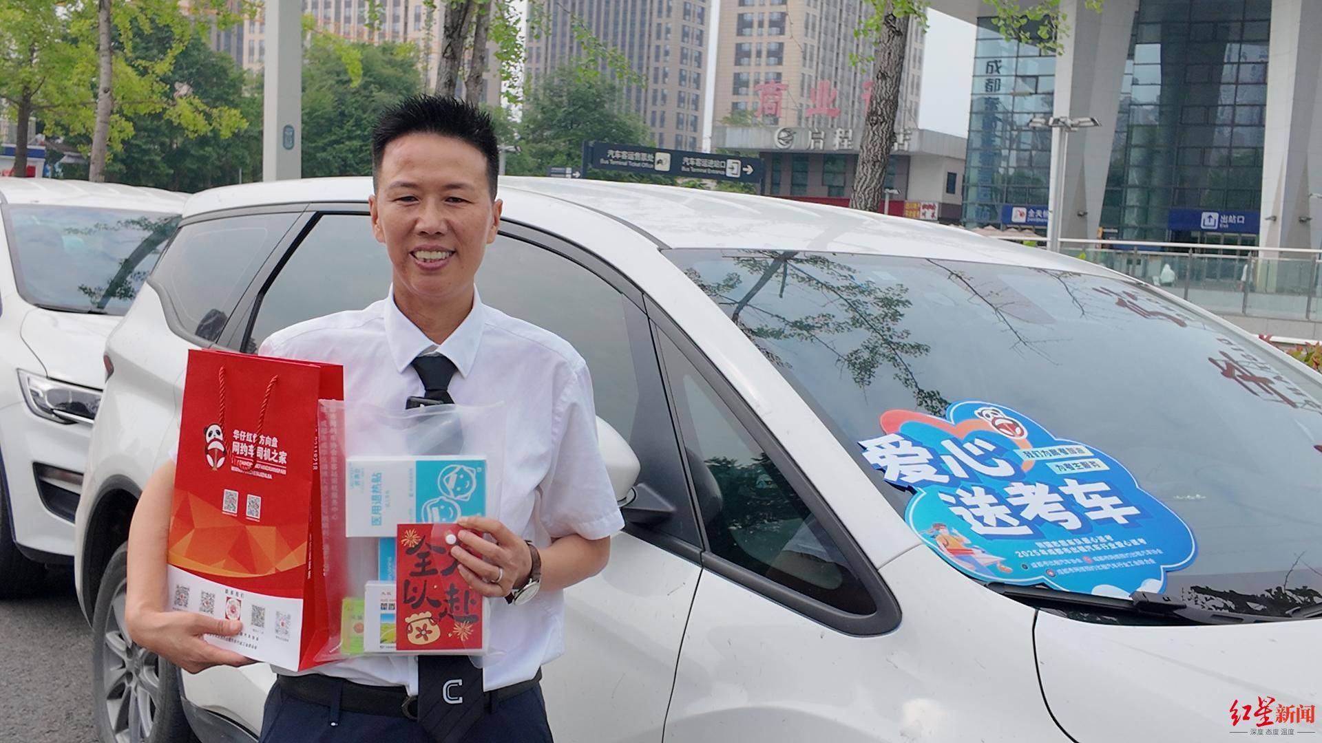 5月29日上午,红星新闻记者在成都东站汽车客运站前广场上看到,网约车与巡游车企业代表、80名爱心司机汇聚于此,领取“爱心送考”专属车贴、防暑包及考生应急包,在每辆车配备的应急包内,文具、葡萄糖口服液、鼓励卡片一应俱全。记者从现场了解到,今年爱心送考团队共有300余台车,将通过“一对一预约”和“考点应急服务”双轨保障,确保考生无忧赴考。