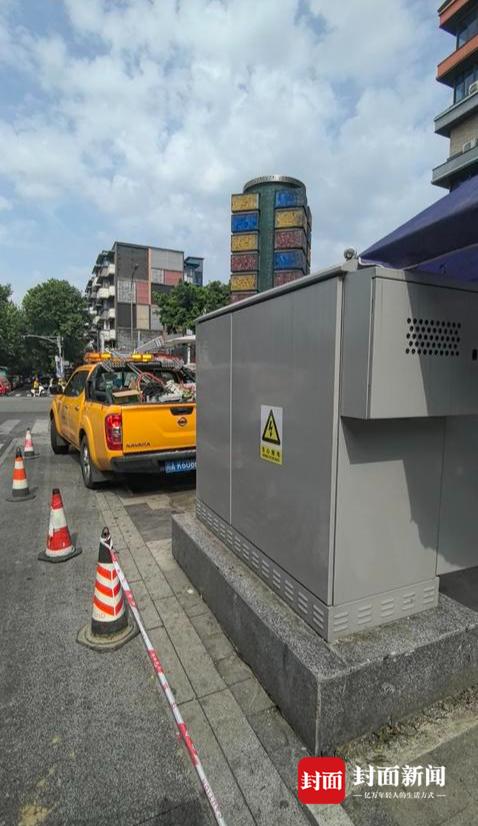 苟先生称,他和同事昨晚就来更换过被撞坏的配电柜。“昨晚我们换到12点钟才临时弄完,还没有通电。所以今早上来继续弄,不然会影响到周围,路灯、红绿灯都不亮。”