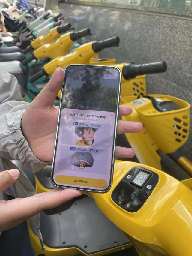 佩戴头盔后,新型共享助力车才能通电骑行。