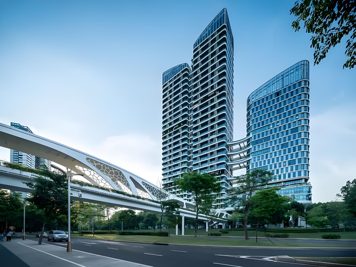 金迪世纪大厦矗立于南山区侨香路与侨城东路交汇处,是华侨城片区稀缺的生态甲级写字楼。项目总建筑面积8万㎡,由东塔(29层/168米)和西塔(27层/158米)组成,获LEED金级预认证及2017年深圳园林大金奖。项目以"垂直绿化+空中花园"设计为核心,打造会呼吸的生态办公空间,毗邻腾讯、大疆等科技巨头,形成产业辐射圈。