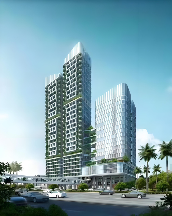 建筑形态双塔结构(东塔29层/西塔27层)