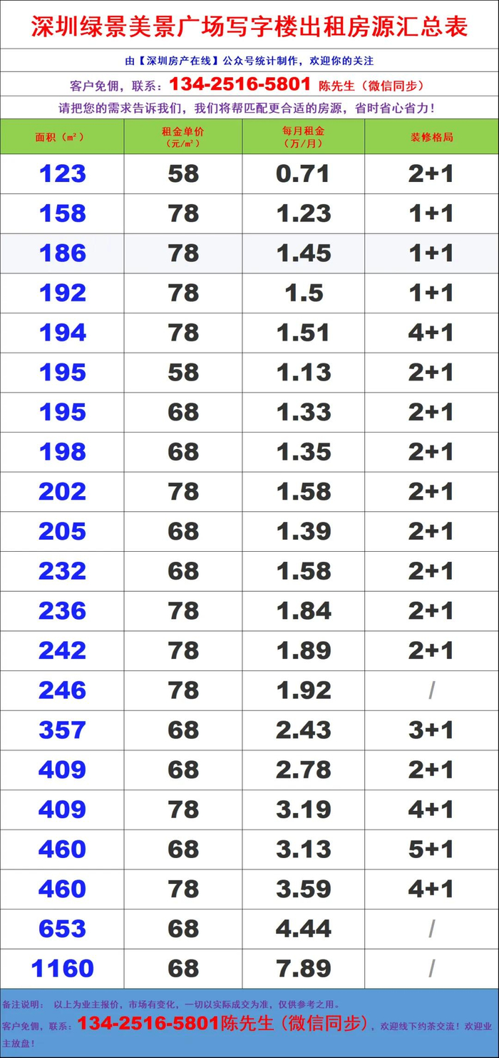 深圳华侨城性价比之王 绿景美景广场甲级写字楼出租招租