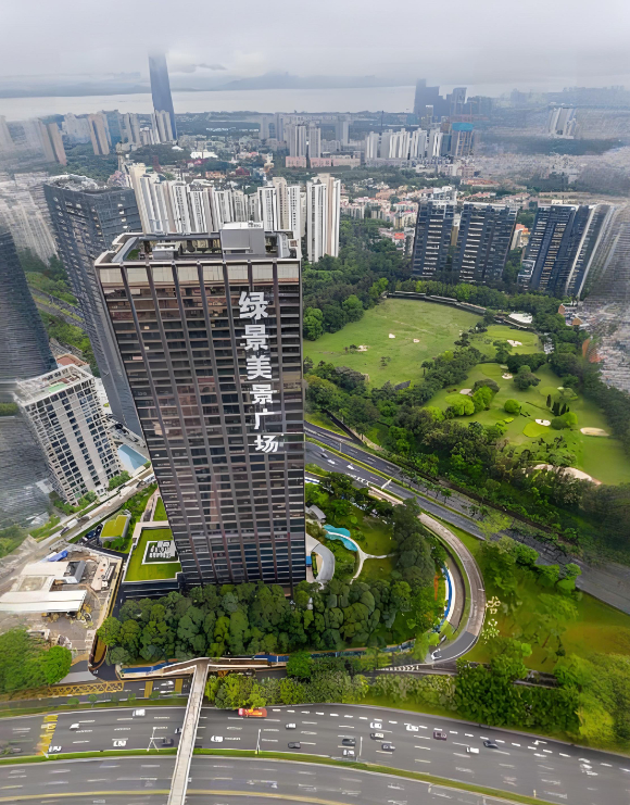 绿景美景广场位于深圳市南山区侨香路4088号,是华侨城片区稀缺的甲级商务综合体。项目总建筑面积9.7万㎡,由38层甲级写字楼、裙楼商业及商务公寓组成,获LEED金级与国家绿色建筑二星双认证。项目地处南山-福田双中心交汇处,毗邻广深高速、北环大道、侨香路三大主干道,2号线侨城北站步行5分钟可达,构建"10分钟深港通勤圈"。