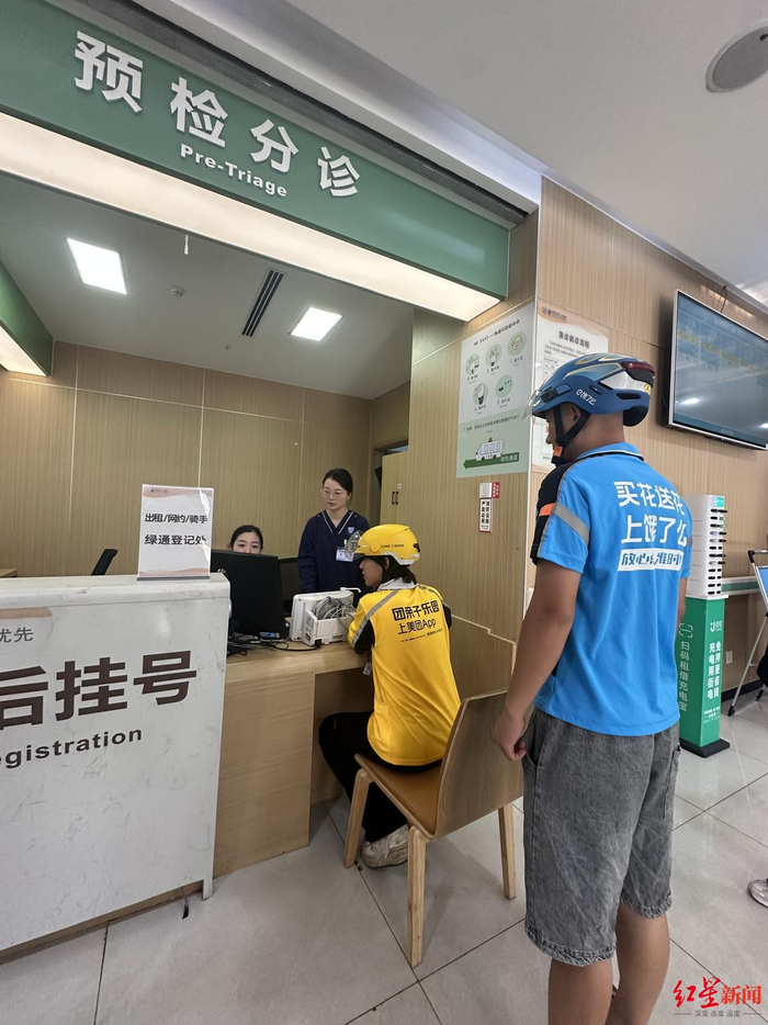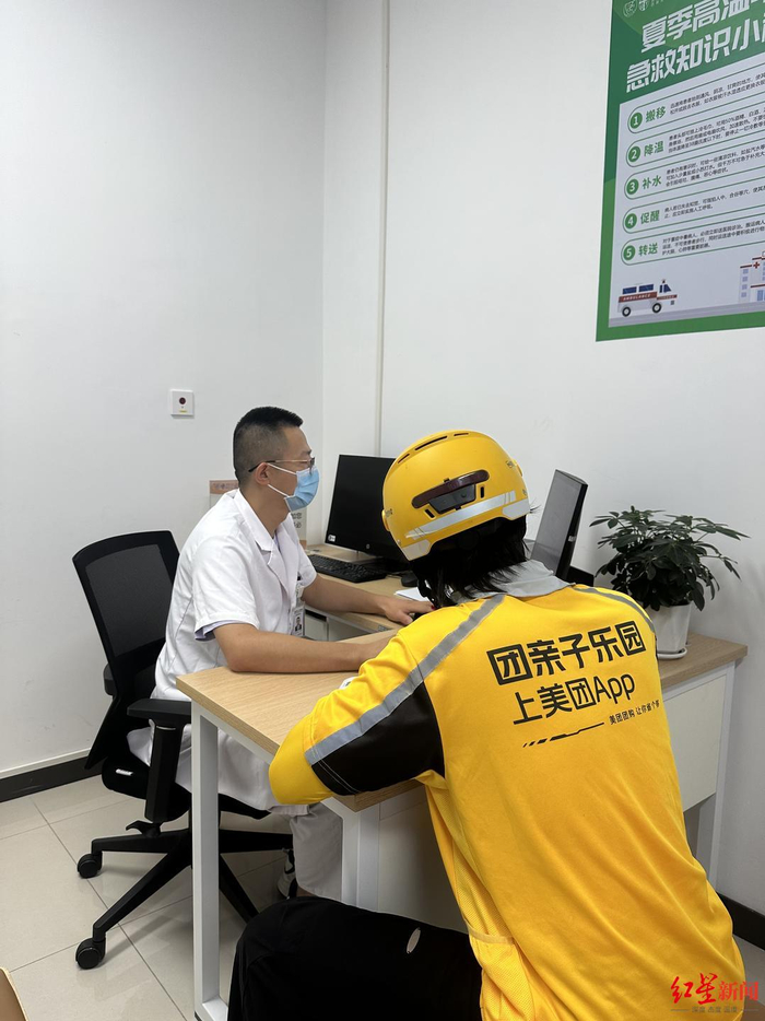 ▲外卖小哥在就诊从全流程来看,医院会安排经验丰富的医护人员为就诊人员提供快速诊断和处理服务。针对该群体易面临的交通事故伤、急性外伤、心脑血管急症、中暑、肌肉劳损、急性胃肠炎等健康风险,依托三甲综合医院充分整合了急诊、呼吸、消化、康复等多学科资源,设置了对应等级的急诊、急救流程。