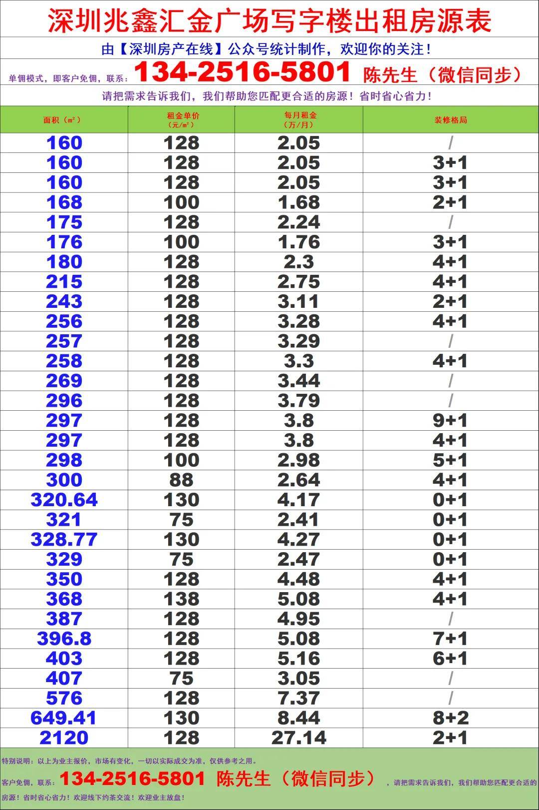 深圳兆鑫汇金广场办公室出租招租招商租赁