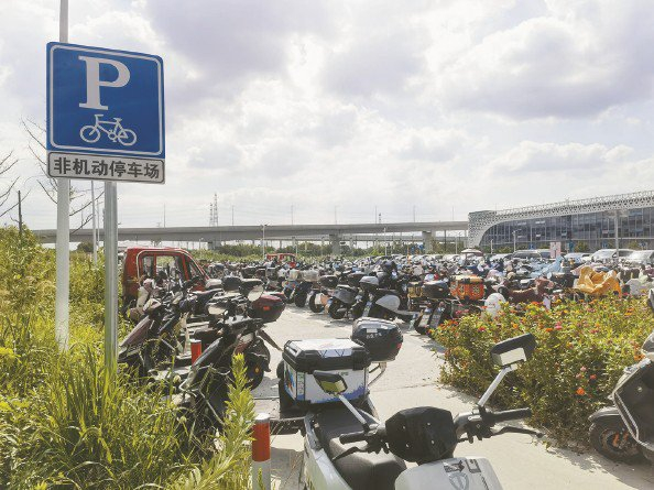 上海松江站附近非机动车很多,但少见共享单车身影 陈浩 摄