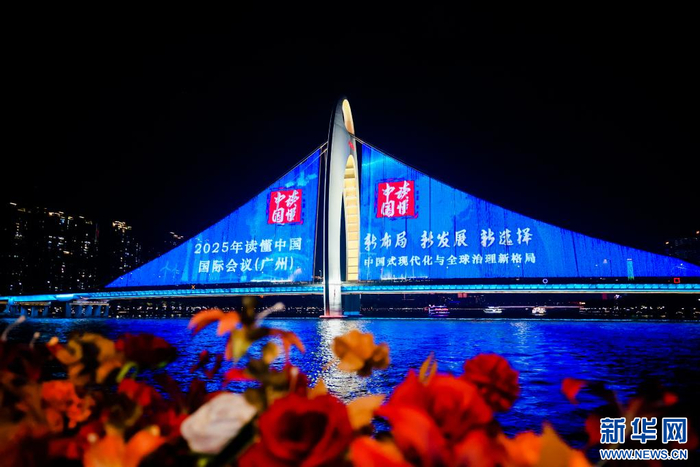 12月1日,猎德大桥展示2025“读懂中国”国际会议(广州)宣传标语。新华网发(主办方 供图)不少与会嘉宾认为,粤港澳大湾区正朝“中国式现代化建设的引领地”发力前行,它的高水平开放对于中国深度参与全球治理具有重要作用。