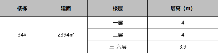 层高:1-2层层高4米,3-6层层高3.9米;