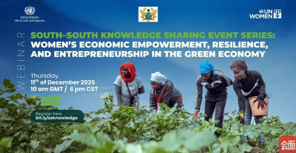 北京时间12月11日晚,由联合国妇女署西非和中非区域办事处,加纳性别、儿童与社会保障部,以及联合国南南合作办公室共同举办的“南南知识共享系列活动:绿色经济中妇女的经济赋权、韧性与创业精神”线上研讨会顺利召开。