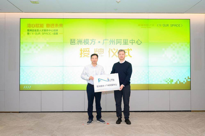 海珠区向阿里中心授予“琶洲模方·广州阿里中心”牌匾。通讯员供图据悉,该中心也是琶洲模方与“Y/OUR SPACE亲橙空间”共建的大模型孵化空间,依托阿里巴巴生态,集空间、市场资源和金融支撑“创孵一体”,为初创企业和团队提供全程陪伴。