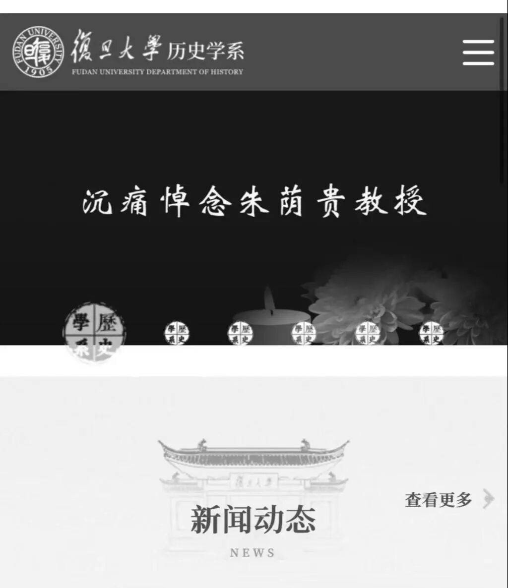 9月24日,记者发现,复旦大学历史学系官网已变为黑白色,悼念朱荫贵教授。