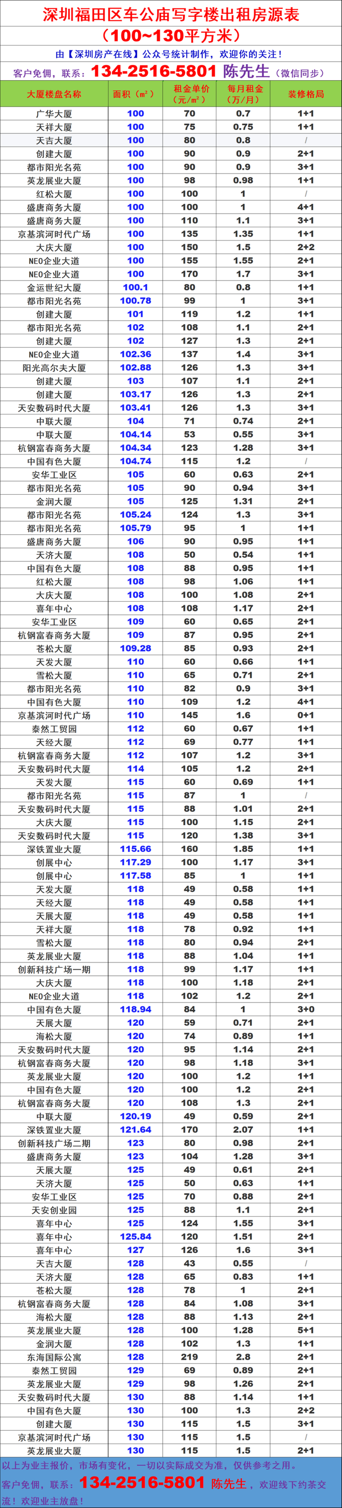 深圳福田区车公庙片区100-150平米写字楼出租招租赁信息