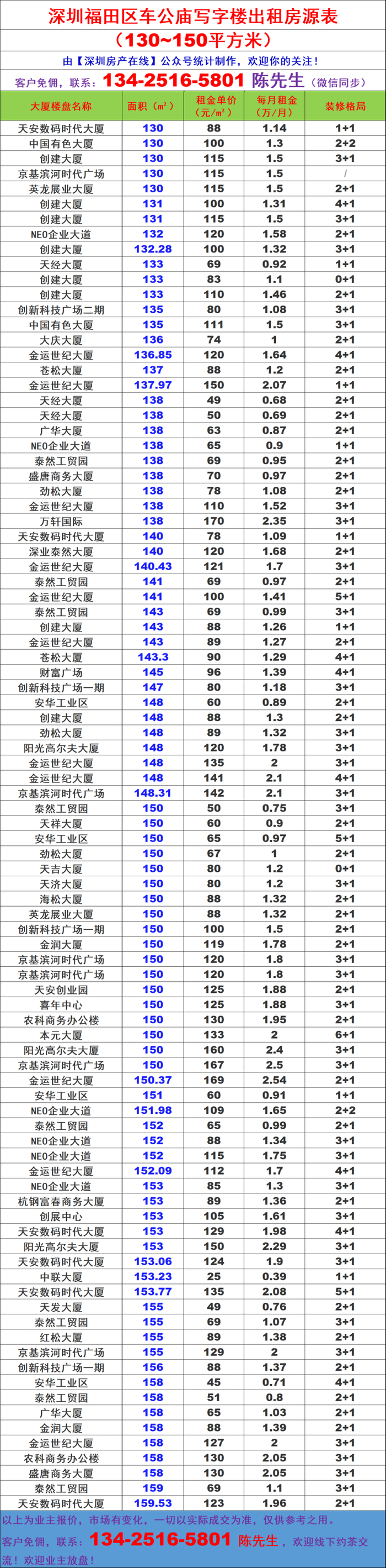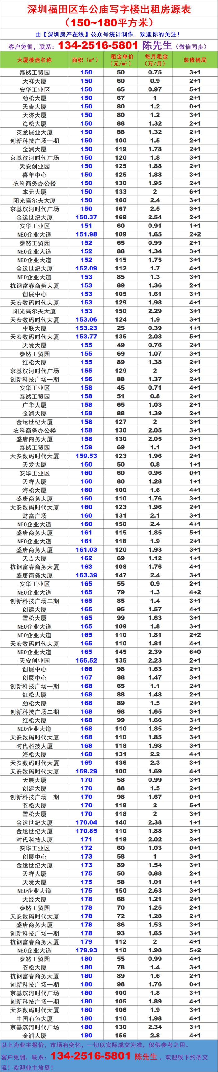 深圳福田区车公庙片区150-180平米写字楼出租招租赁信息