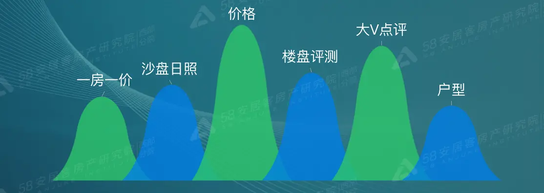 58同城、安居客《2022年成都一季度理想安居指数报告》显示,在用户线上最关注的楼盘维度方面,除了价格之外,线上大V点评、沙盘日照、楼盘测评等内容也成为用户在线了解楼盘的重要参考。