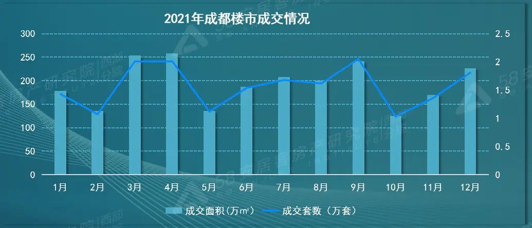 58安居客房产研究院西部分院院长周鸿总结成都楼市表现时表示,2021年成都楼市政策频出,土地市场开展三次集中供地、新房调整摇号顺位、二手房三出指导价,从一二三级市场“多拳齐发”调控市场。全年有近24万购房者上车,同比上涨4.2%,虽然期间经历房企频频“暴雷”影响部分购房者选房进度,但在下半年维稳举措下,部分购房者重启置业计划,带动新房、二手房成交翘尾,整体成交相较2020年无大的波动。