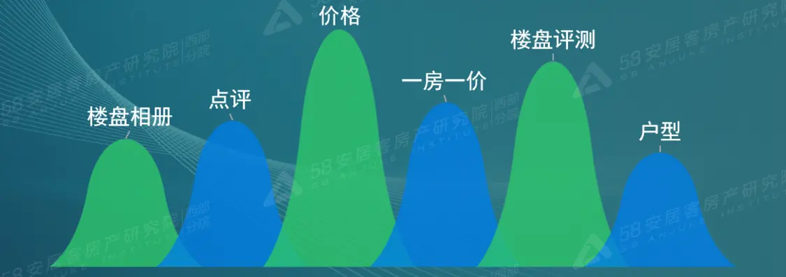 根据58同城、安居客平台用户线上最关注的楼盘内容统计, 2021年“价格”、“一房一价”等事关购房成本的维度依旧是用户非常关注的。此外,能全方位、多角度展示楼盘优劣势的评测内容也吸引了众多用户的目光。