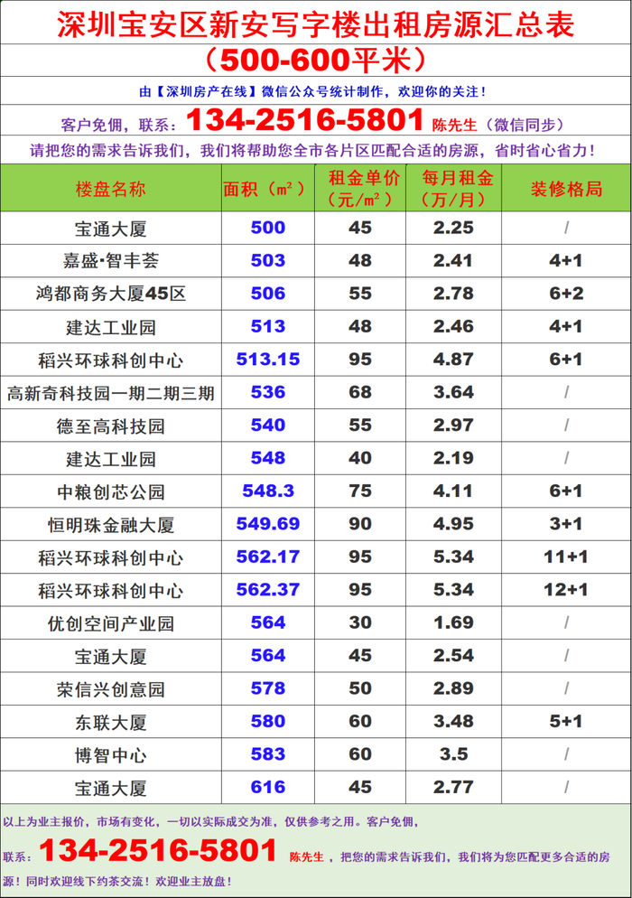 【深圳房产在线】陈先生:134-2516-5801(微信同步)
