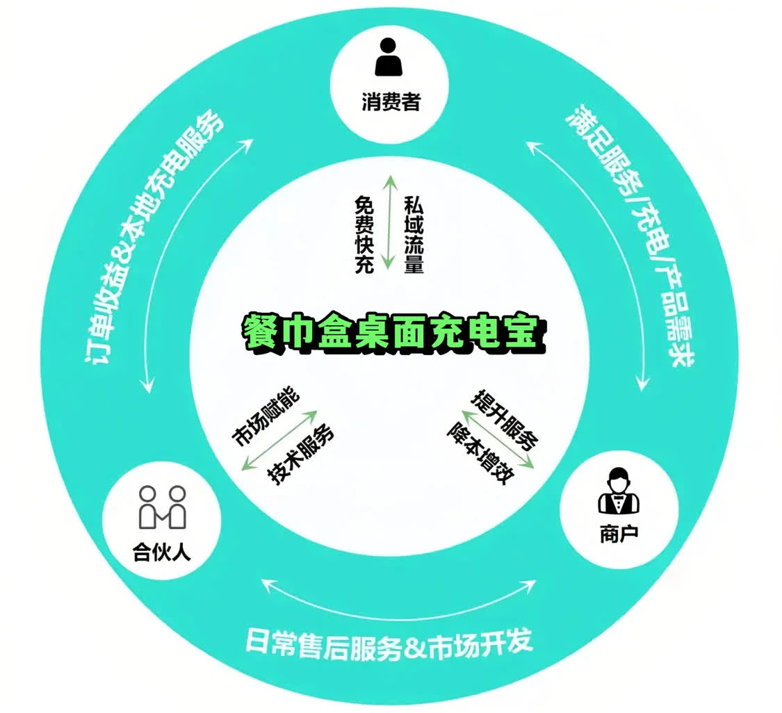 传统共享充电宝因流程繁琐、费用高、体验差等问题,逐渐被消费者诟病为“充电刺客”。餐巾盒共享充电宝已率先在打响“免费补电”第一枪,经过前期的市场探索和布局,餐巾盒共享充电宝现面向全国公开招募城市合伙人。普通创业者&投资人,无需开店、无需人工、无需经验,只需要免费把设备铺到商家桌面场景即可。对于合伙人而言是一次性投入,坐享长期管道收益的。