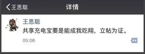 当时共享充电宝被普遍认为是“伪需求”,王思聪曾立帖为证:“共享充电宝能成,我吃翔”。