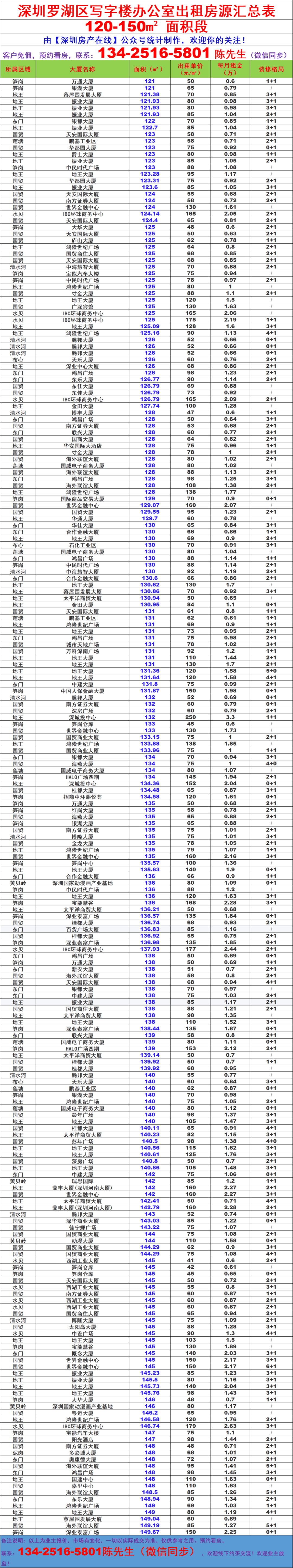 深圳罗湖区120-150平米写字楼出租招租赁信息