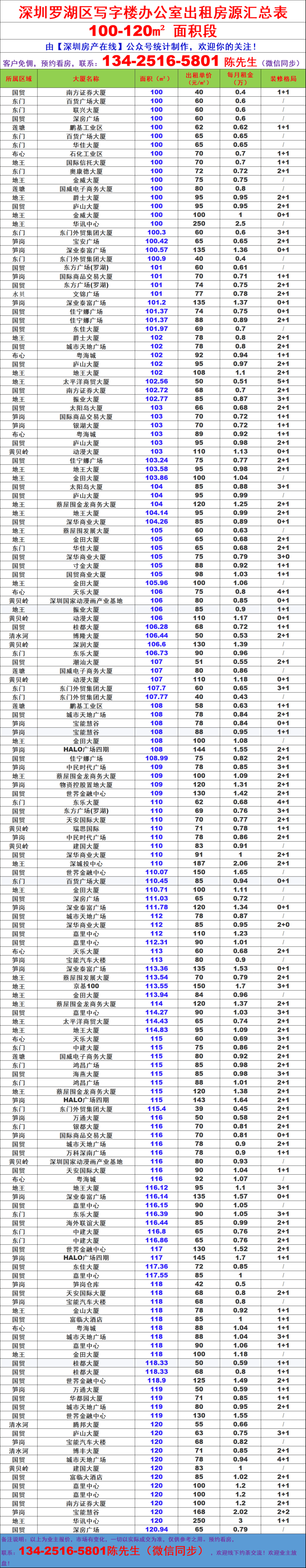 深圳罗湖区写字楼办公室出租房源信息表&租金价格表