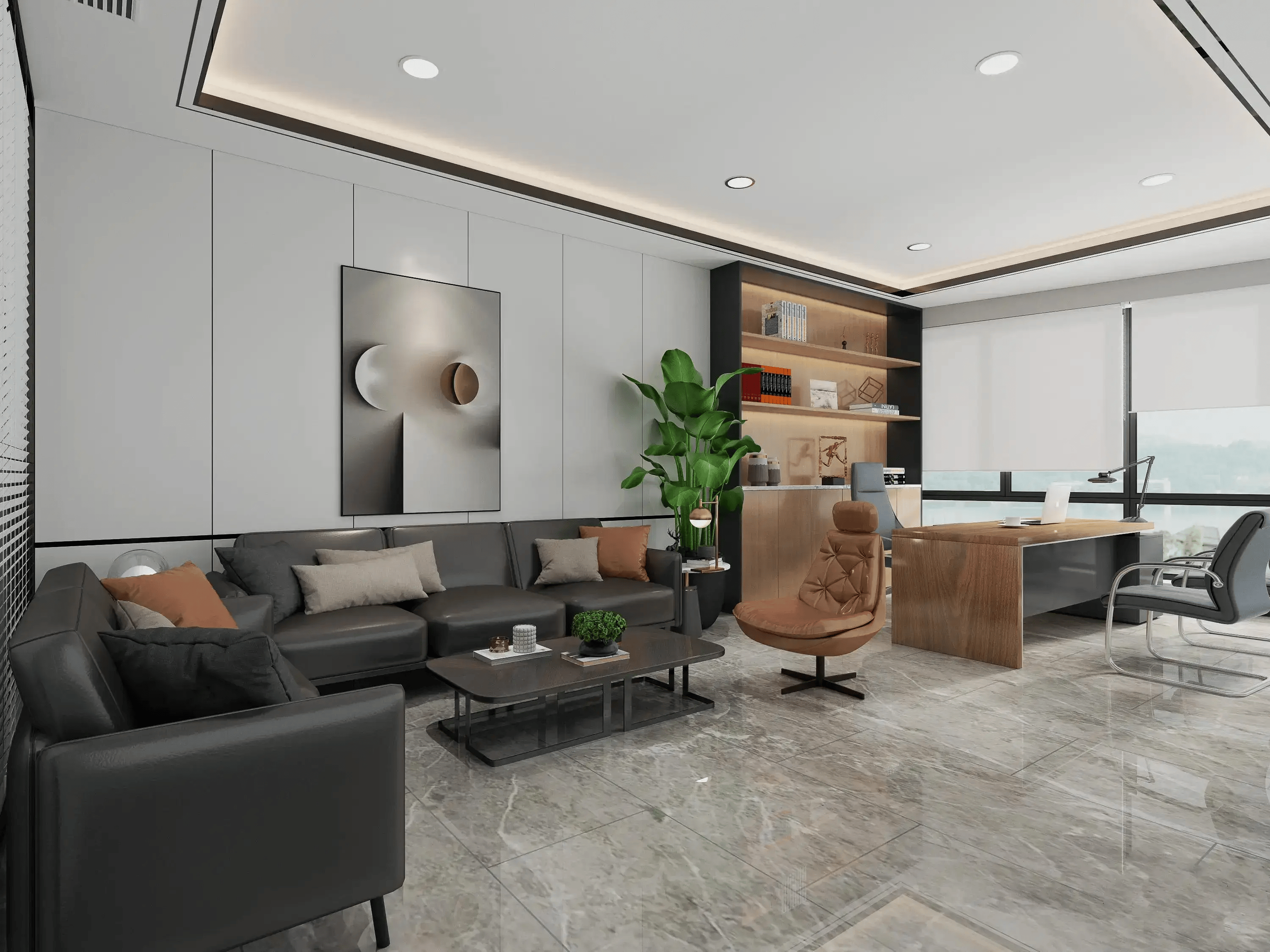 - 地面:办公区优先选耐磨地砖、复合地板(抗压、易清洁,单价80-150元/㎡);会议室/前台可选大理石(提升质感,单价200-400元/㎡),避免用实木地板(易受潮、变形)。
