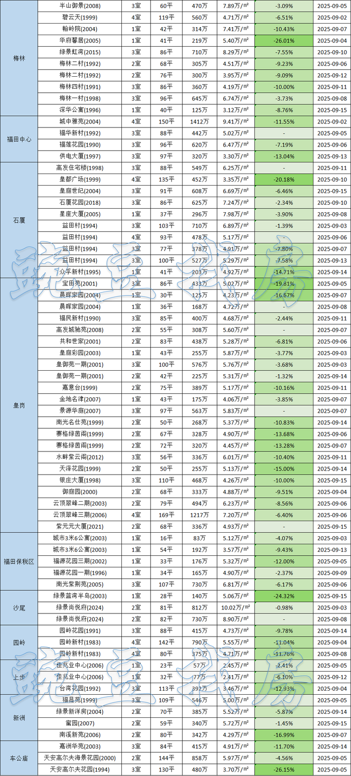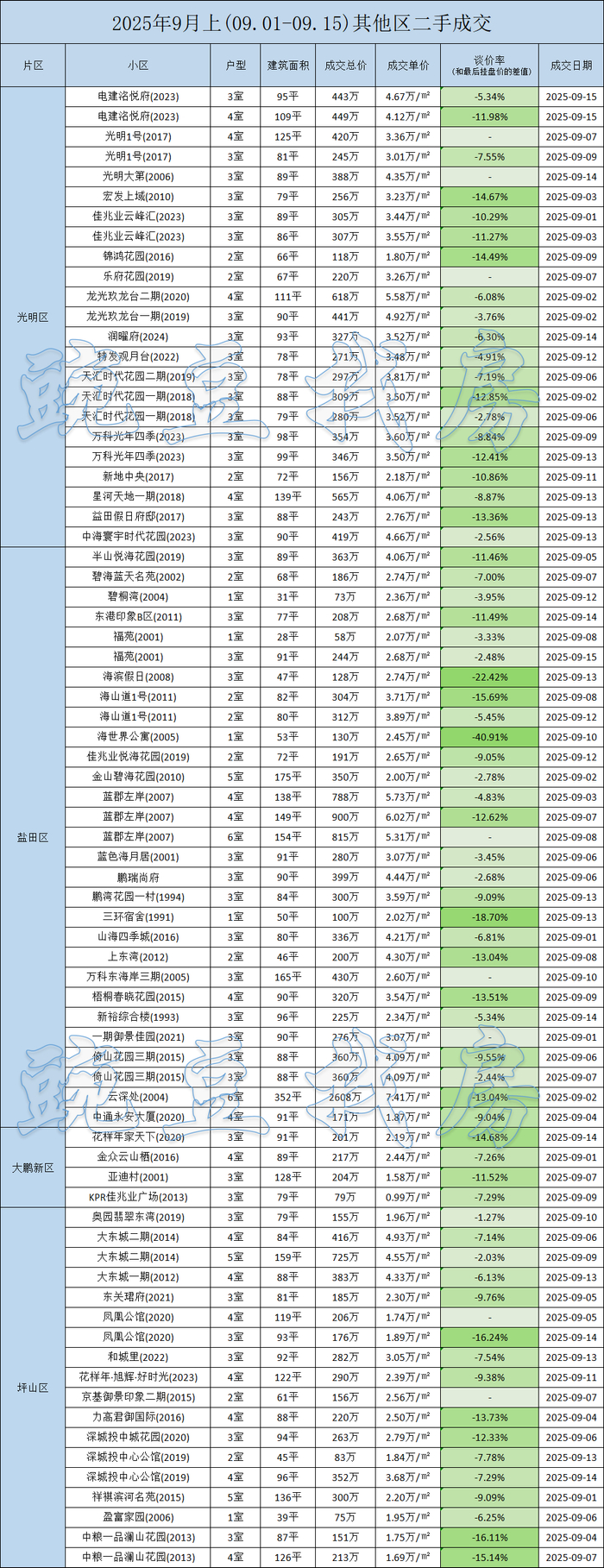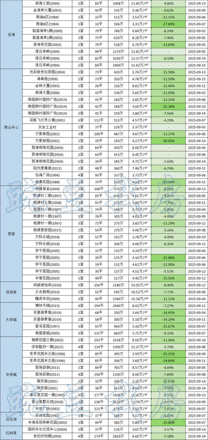 当前市场环境下,置业的核心逻辑已转变为选择安全边际高的项目。这包括:优选核心地段的优质资产、关注项目的实际居住品质、评估周边的真实配套成熟度,以及避开过度依赖概念炒作的区域。对于真正的自住客群而言,当前市场反而提供了难得的“淘金”机会,关键是要摒弃投机思维,从长远居住价值出发做出选择。深圳楼市新政落地后,9月上旬的二手房成交情况引发市场广泛关注。整体来看,曾经备受追捧的“网红盘”普遍表现乏力,部分楼盘价格回调幅度超出预期,而一些原本低调的住宅项目,反而呈现出较强的价格韧性。