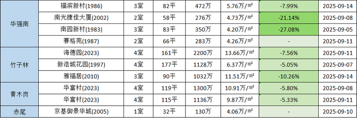 福田市场整体表现稳健,特别是次新楼盘受到买家青睐。绿景尚悦府的回迁房两房单位以9-10万的单价成交,显示出市场对福田核心地段次新房的认可。相比之下,曾经一房难求的海德园价格回调幅度较大,目前已接近当初的一手购入价格,让不少早期投资者感到意外。