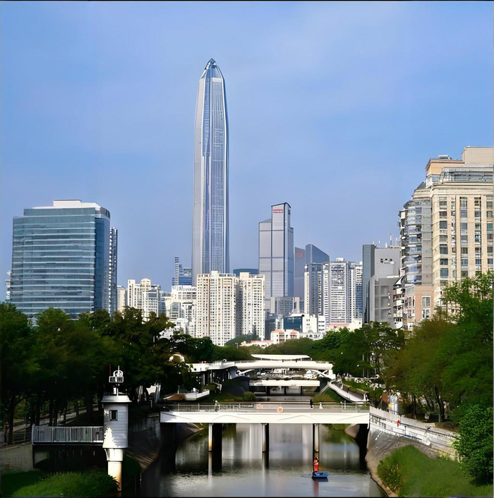 生态低碳典范:莲花山—中心公园—福田河“五园连通”,绿色建筑面积达1100万㎡,人均绿地面积12㎡。全国首个“低碳超市”平台整合230种绿色技术,气候投融资项目库规模达276亿元,打造“城市中心绿肺”。