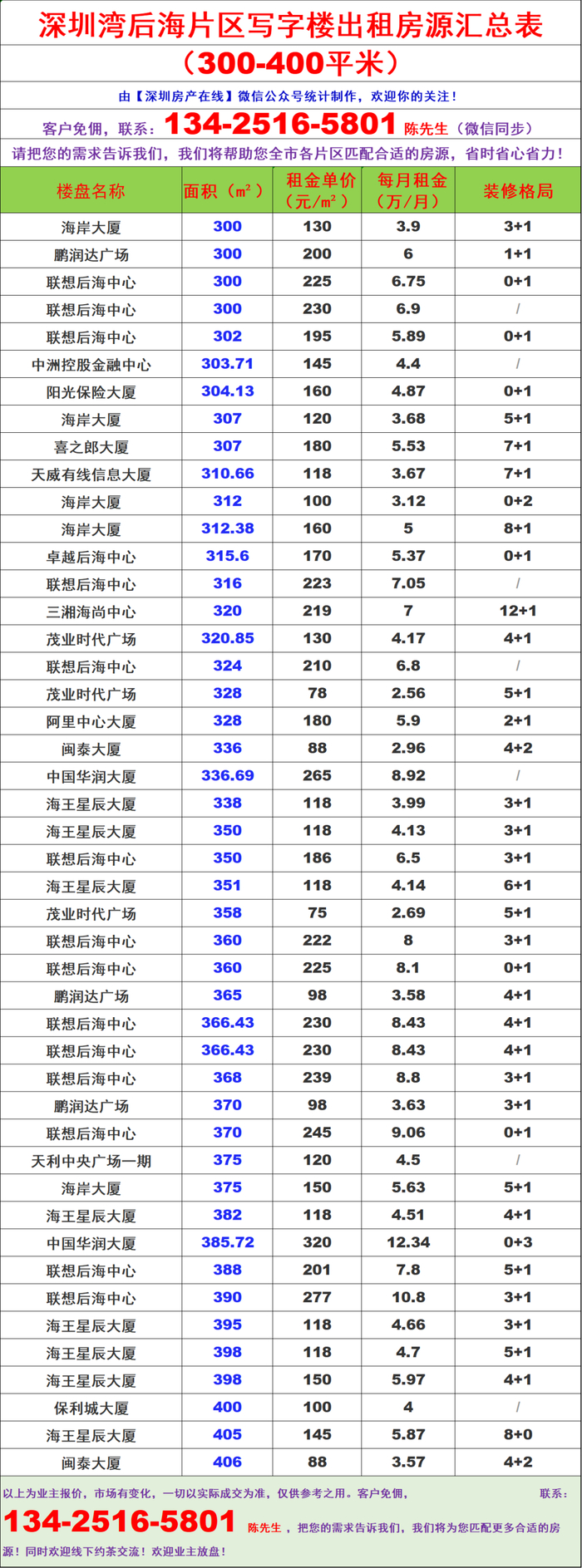 【深圳房产在线】陈先生:134-2516-5801(微信同步)