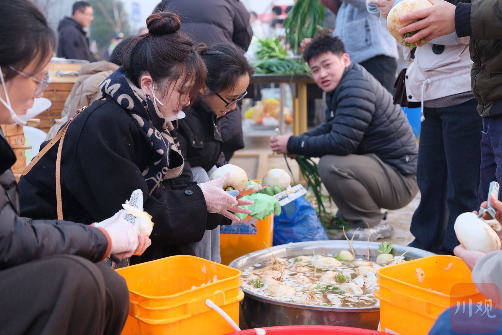 桌椅沿着小路摆开,市民冬日里尽享刨猪汤。时至中午,三头黑土猪已悉数化作佳肴,铁锅中的汤汁依然热气氤氲、香味浓郁。网友们自觉分工,端菜、分餐、清理,每个人都在劳动中体会到参与的满足。阳光下,汤锅滚滚,灶火正红,欢声与笑语此起彼伏。人们不仅尝到了地道的四川风味,更在热腾腾的烟火气中,找回了那份渐行渐近的传统年味。