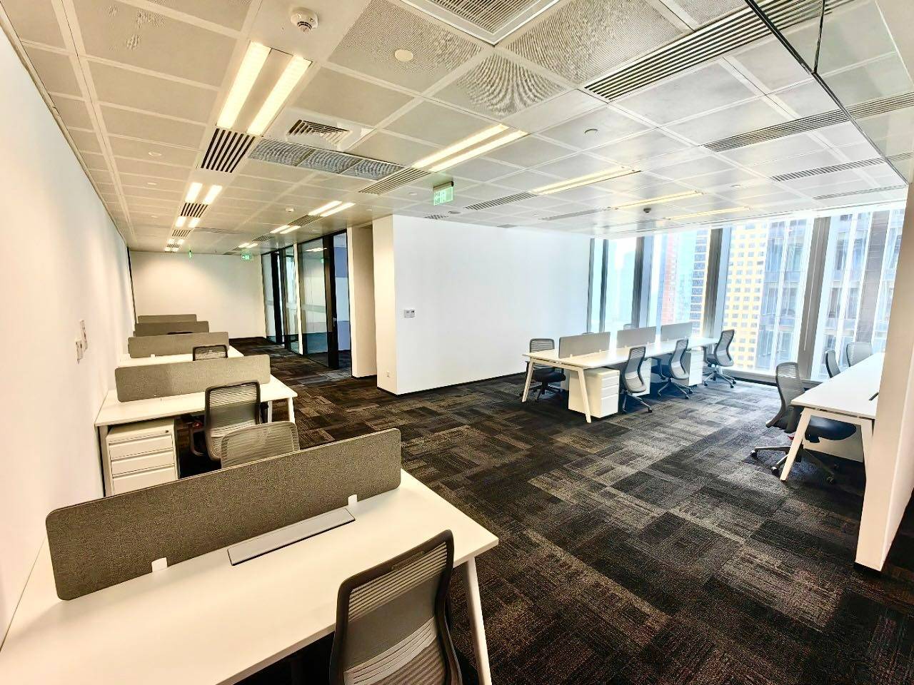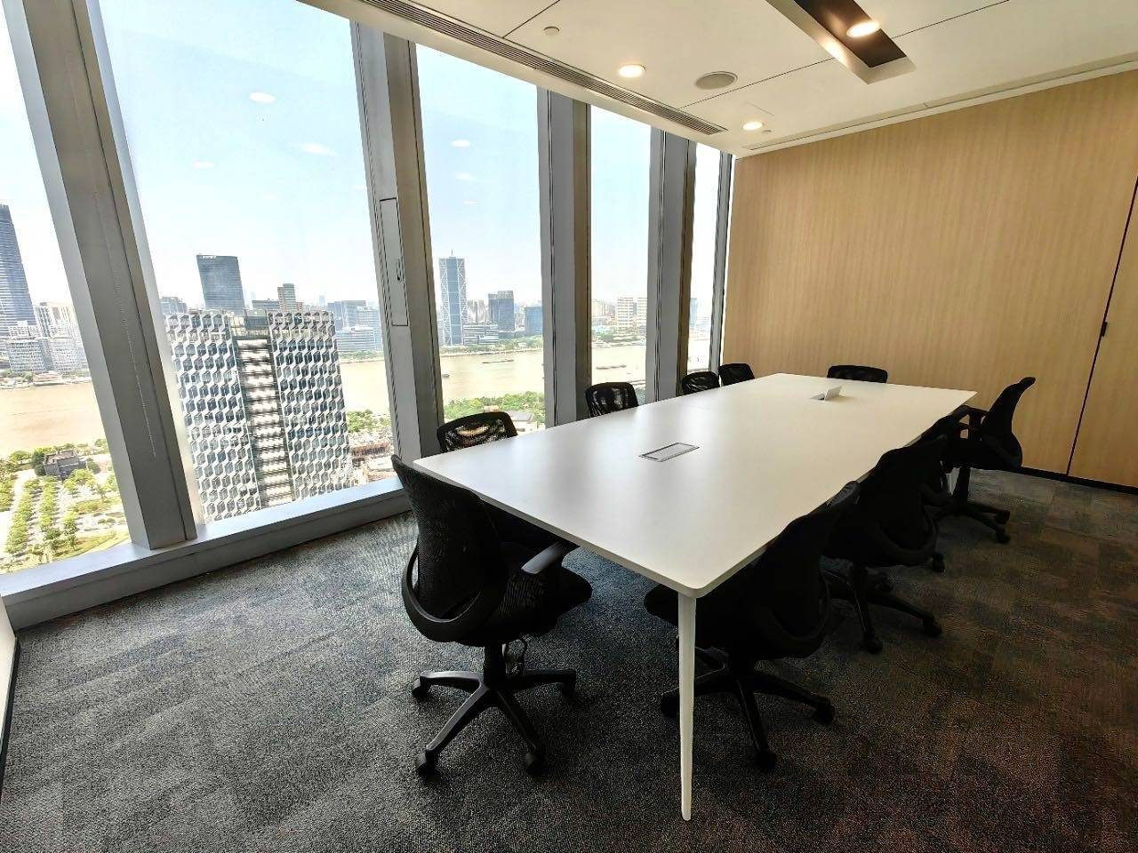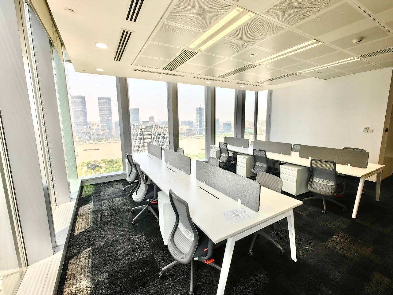 精装修办公室通常指的是已经完成了基本装修的办公单元,包括地板、天花板、照明、空调系统以及基本的隔墙处理。在中国人寿金融中心,这些办公室多采用开放式或半开放式布局,适合中小型企业或团队使用。装修风格以简洁实用为主,色调偏中性,地面多使用地毯或复合地板,天花板装有嵌入式灯具,整体光线均匀。部分单元还预留了网络和电源接口,方便企业根据自身需求进行后续布置。