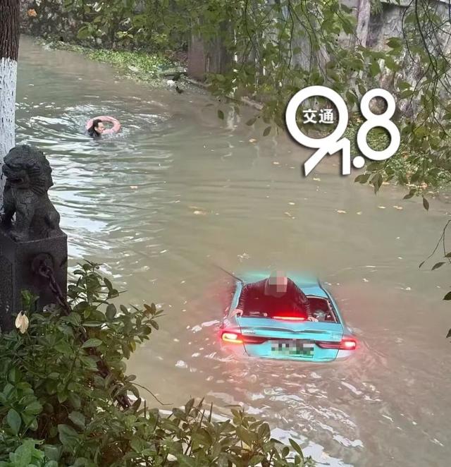 通过吧友提供的图片和视频看到,车子掉进河里后,车头向下倾斜,车体还在下沉,车内的司乘人员正努力从车窗位置逃出,岸边的好心人往车子下沉的附近抛救生圈提供帮助。