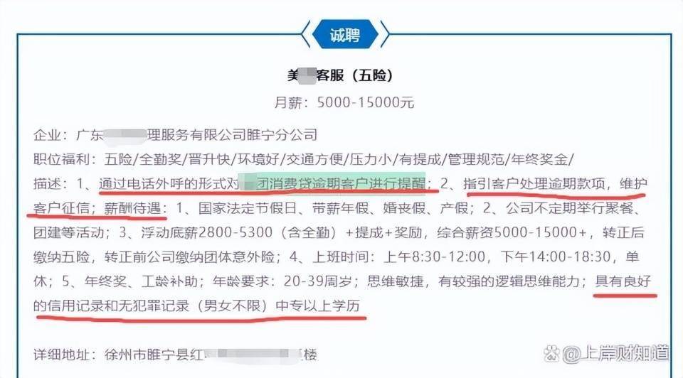那么谁又变成新的“催收之都”呢?从招聘广告和市场调查发现,有人说江西的鹰潭,但是比较确认的是,应该是江苏徐州,尤其是下面的睢宁县,可能是全国催收公司最为集中的一个县城。根据不完全统计,公开大规模招聘员工的催收公司,就有着40-50多家。另外还有着很多工作室,他们可能接一些三包四包的业务,位置隐蔽,小作坊式的定点催收。