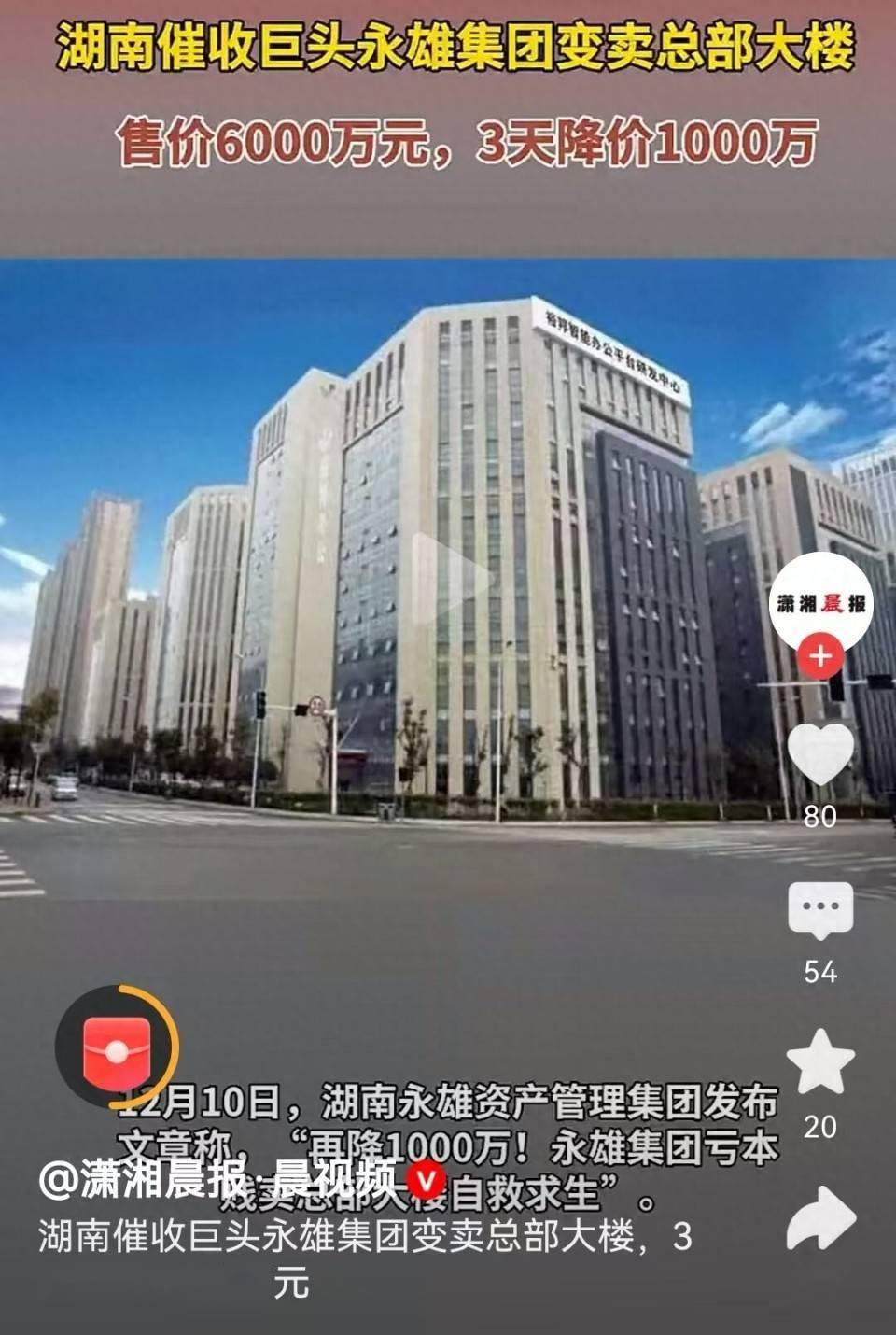 湖南永雄资产管理集团在其微信号上宣称,为尽快筹措资金归还 长沙银行到期贷款及个人借款等,决定将长沙的办公楼再降价1,000万 ,现在6,000万就卖。同时实际控制人谭曼老板家乡的一栋办公楼也在挂牌卖。他们真的舍弃这块业务了,为什么看起来一片繁荣的市场,过去的行业第一却落寞的离开了?