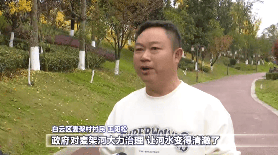 白云区麦架村村民 王阳松:政府对麦架河大力治理,让河水变得清澈了,两边的绿化变得漂亮了,很多村民包括周边的学生一到休息的时候都喜欢在这里散步、照相、锻炼身体,让我们的心情非常舒畅。
