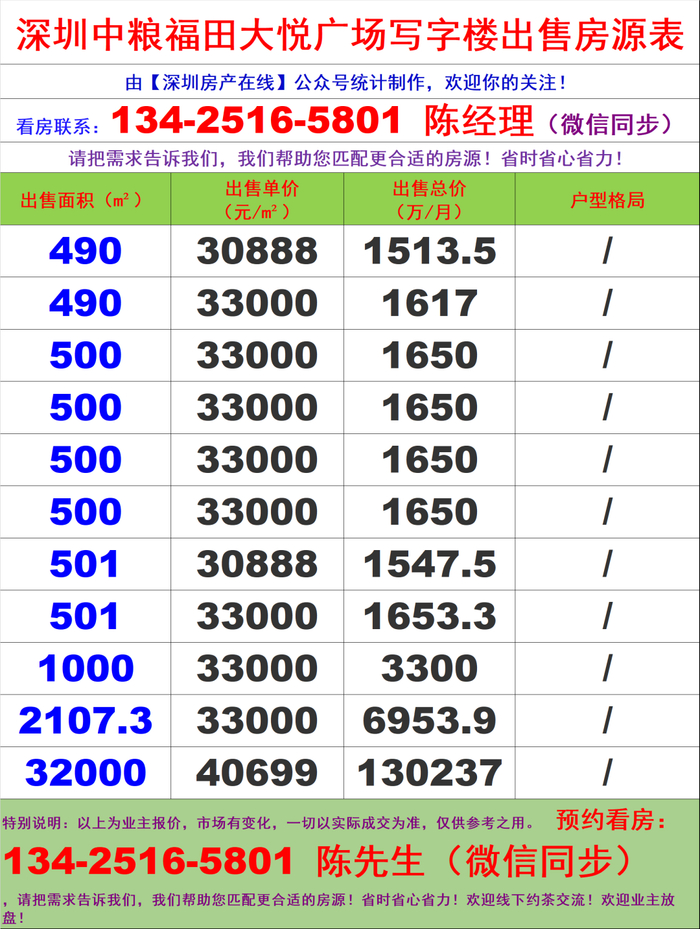 深圳中粮福田大悦广场写字楼出售买卖房源信息