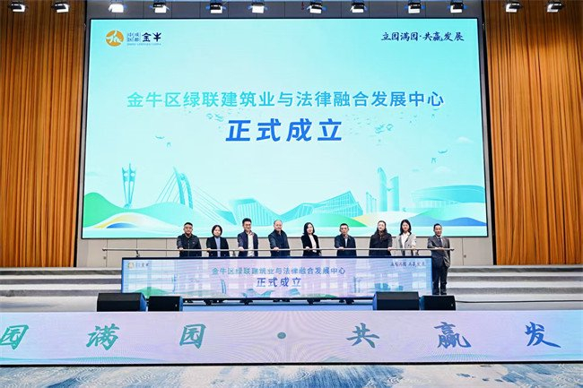 金牛区绿联建筑业与法律融合发展中心举行揭牌仪式。主办方供图活动现场,金牛区绿联建筑业与法律融合发展中心举行揭牌仪式。该中心聚焦绿色建筑项目全生命周期管理,建立覆盖合规审查、纠纷调解、政策落地的长效服务机制,为企业发展提供坚实法治保障。