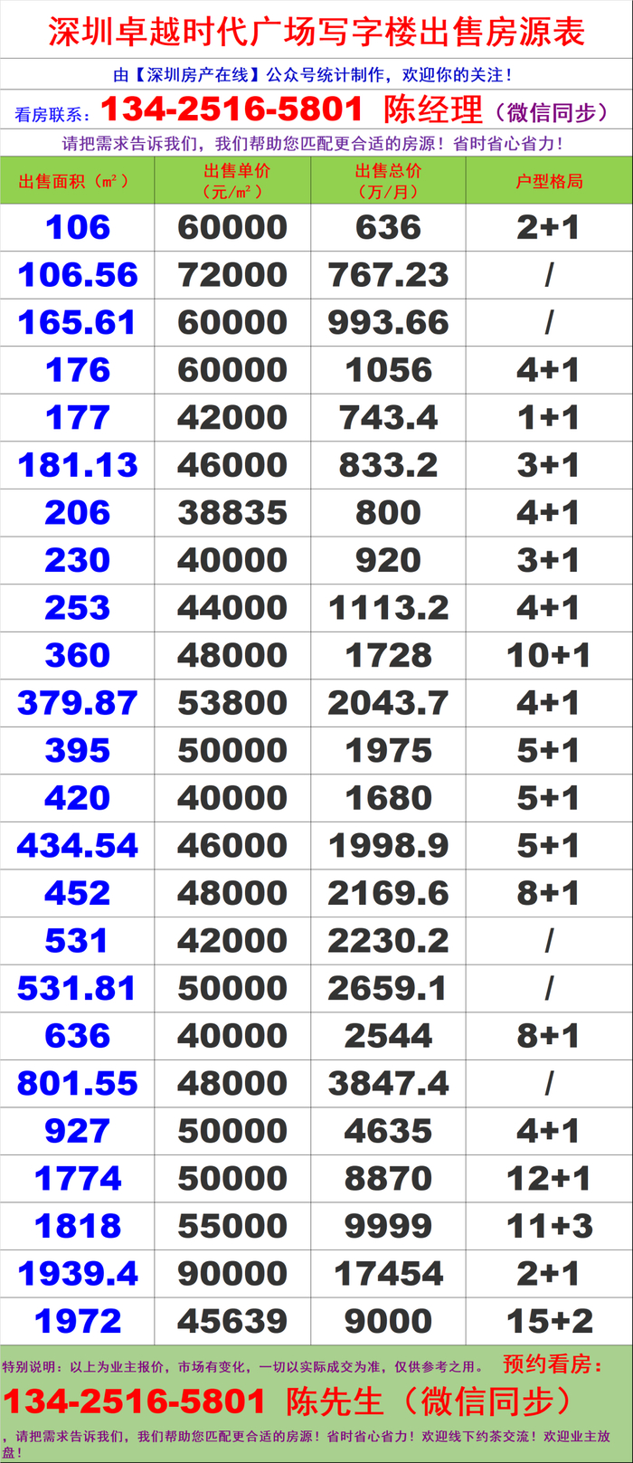 【深圳房产在线】陈先生:134-2516-5801 (微信同步)