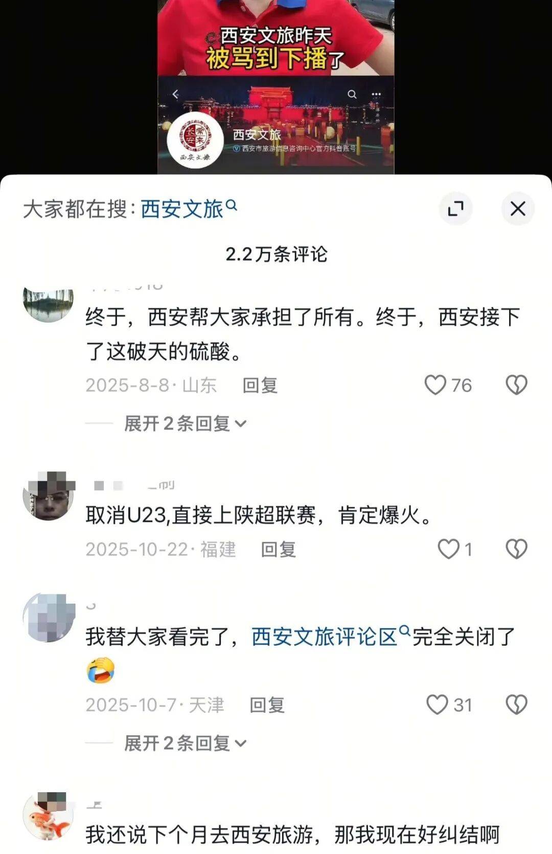 2025年6月17日的陕西文旅共创视频,一天就收到了4万多的骂声。陕西文旅被喷的直接关闭了评论区,而西安文旅到现在都没敢再开放评论区。