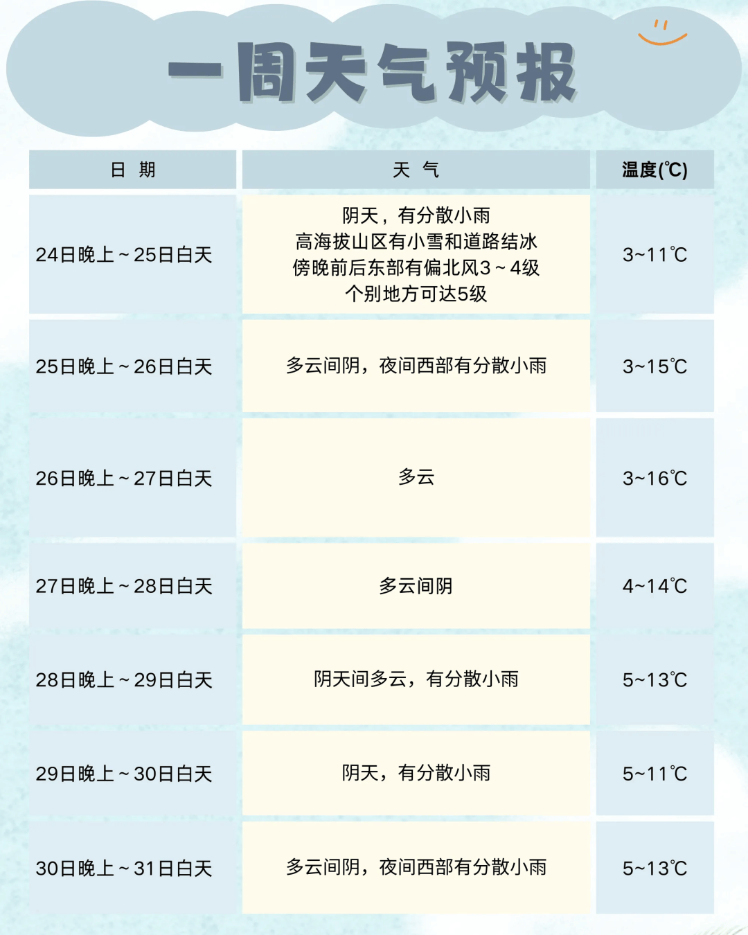大家要注意天气变化