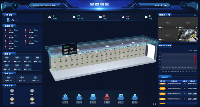 大数据分析技术处理和分析从配电房收集到的大量主站数据、动环数据和视频流数据,实时诊断电力设备的电气参数和环境参数,采取预警预判措施。