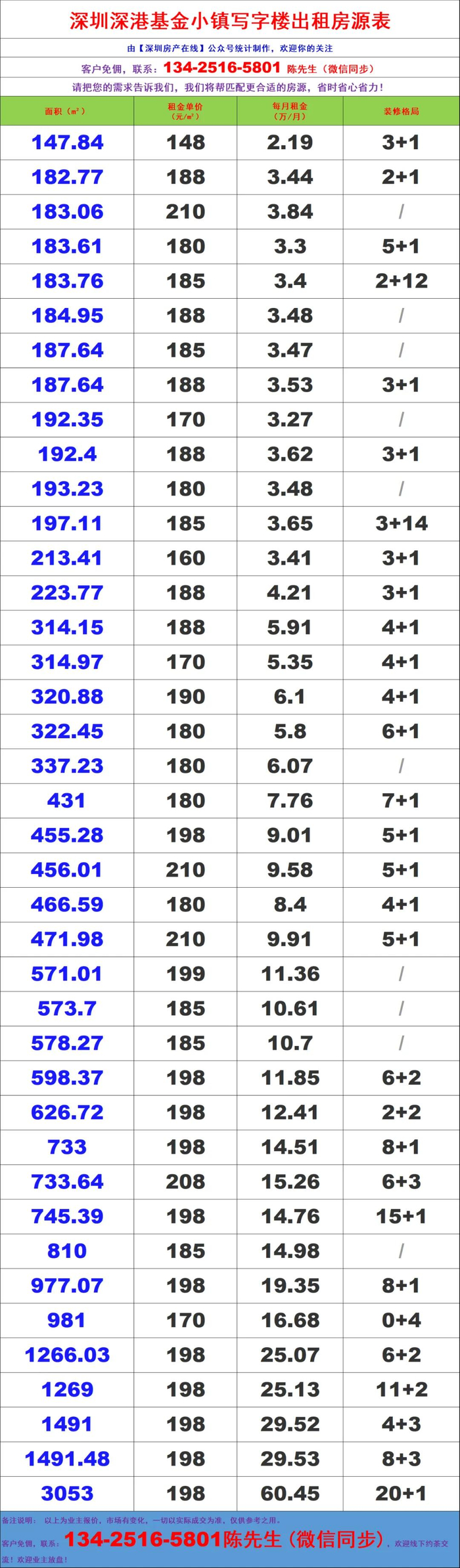 深圳前海深港基金小镇办公楼出租招租直租赁房源信息