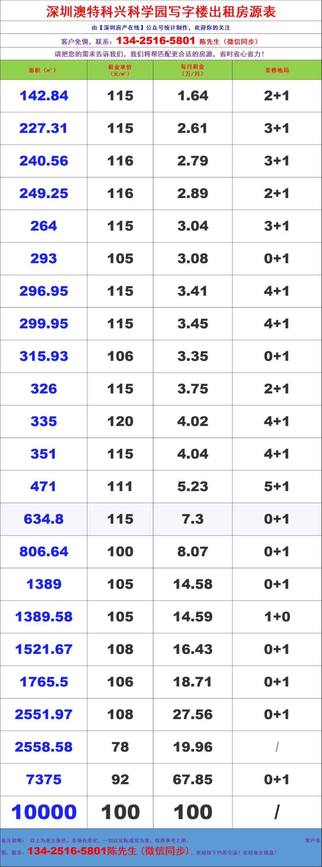 深圳澳特科兴科学园办公室出租招租招商租赁