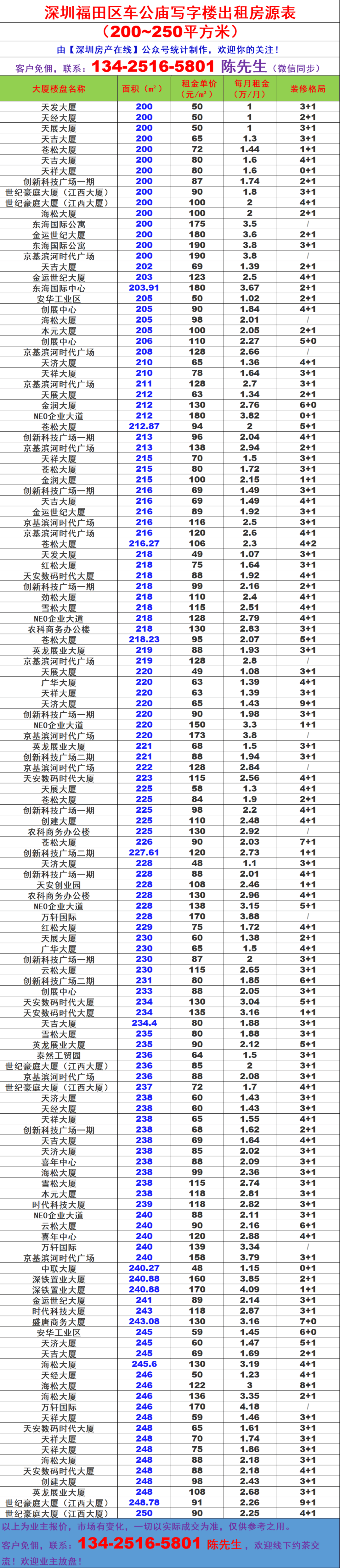 深圳福田区车公庙片区200-250平米写字楼出租招租赁信息