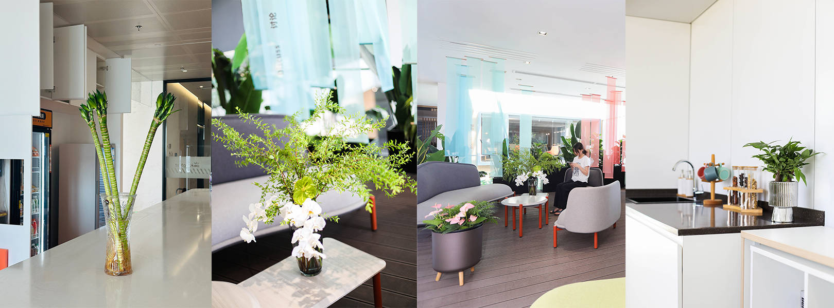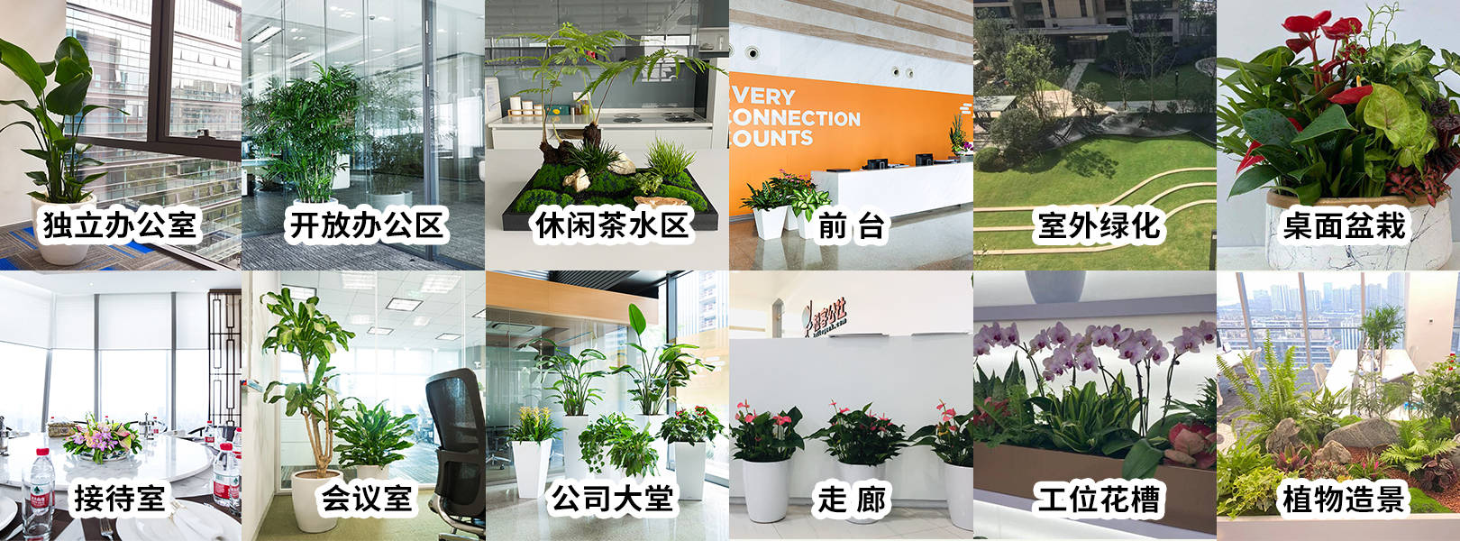 我们针对办公室不同功能区(如前台、开放办公区、桌面植物、花槽隔断、茶水区、会议室、独立办公室、楼梯等),提供量身定制的绿植租赁服务,确保每个区域的绿植布局达到最佳效果。