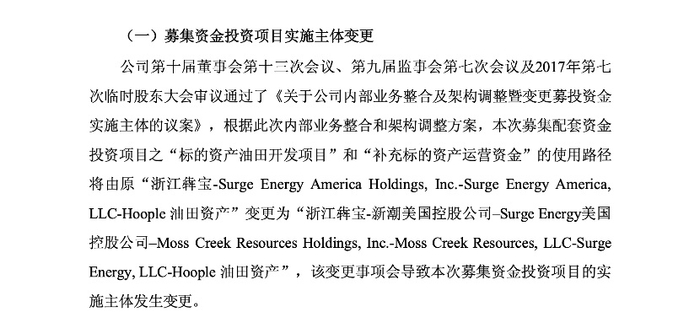 另一方面,*ST新潮子公司浙江犇宝通过行使股东权利,罢免美国子公司新潮美国控股原任董事,进而罢免 Surge Energy US Holdings Company(以下简称“Surge Energy US”)、Moss Creek Resources Holdings, Inc.(下称“Moss Creek”)及Seewave公司的原任董事刘珂、刘斌、李鸣等人,并相应更换为张钧昱、Ting Qiao、Sharon Kwan 作为新董事。