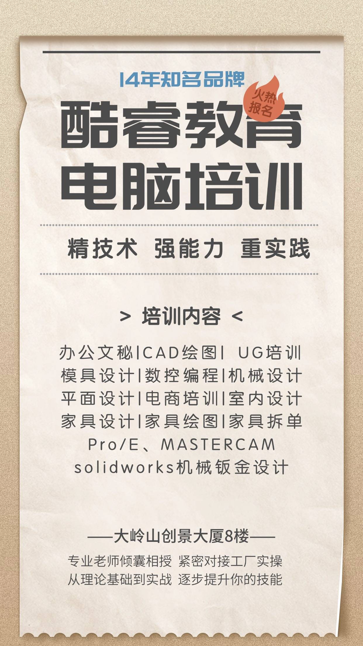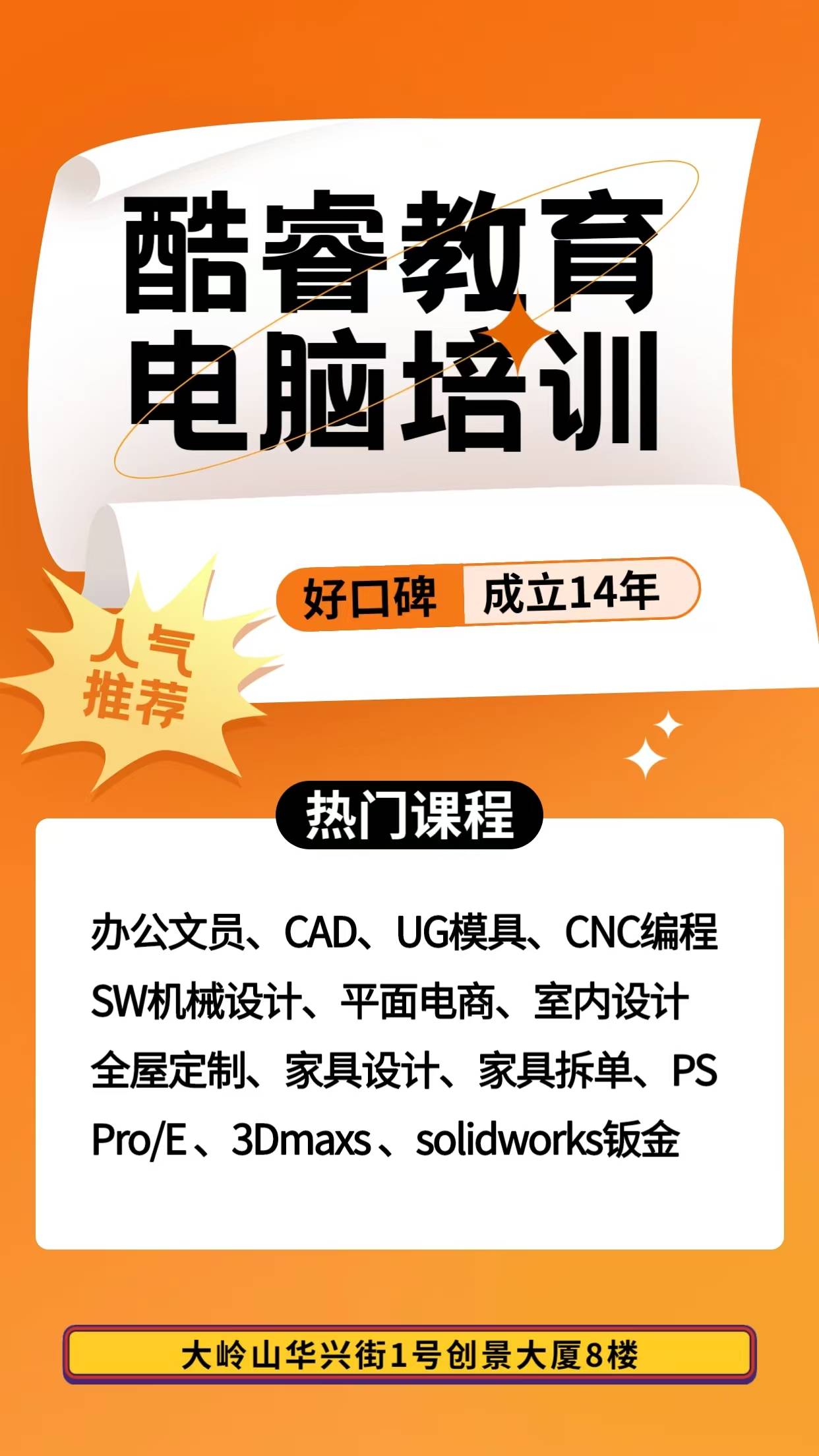 大岭山酷睿电脑培训班地址:大岭山华兴街1号创景大厦8楼