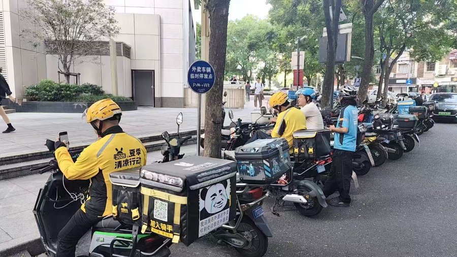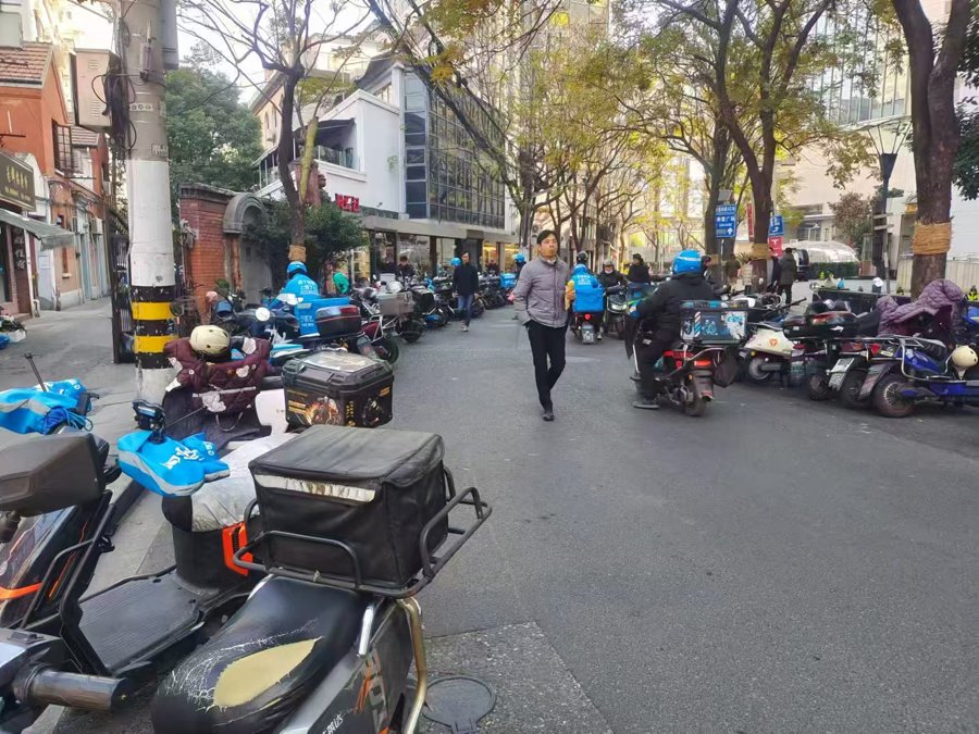 发动多方参与,实现长效治理 共享单车“治理”的复杂性,在于解决方案并不仅仅着眼于治理共享单车本身。这是一个综合性问题,需要发动多方治理力量参与。南京西路商圈商务楼宇周边小马路上停放的非机动车中,还有大量周边居民、楼宇后勤人员的电瓶车,以及临时停放的外卖、快递小哥的电瓶车。针对居民的非机动车停放,各个居委会进行了细致排摸,向居民发放规范停车告知书,引导居民将非机动车停放在小区与街面上规划的白线区域内。针对楼宇物业人员的非机动车停放,街道与楼宇物业协商,引导后勤人员非机动车停放到楼宇地下非机动车库。“最近,街道上线了‘嗅探’智能监测手段,可对街面停放的非机动车车牌号与楼宇物业提供的工作人员非机动车车牌号进行比对,及时发现停放在街面上物业人员非机动车,进行提醒与疏导,以提高街面空间的利用率。”南京西路街道办事处副主任沈伟说。南京西路商圈,餐饮店多、办公楼宇多,因此辖区内的外卖、快递小哥的电瓶车极其多,这一度也是造成路面非机动车停放乱的一大原因。过去,经常有外卖小哥在取餐高峰将电瓶车往餐饮店或者商场门口违规一停,匆匆跑去取餐,造成人行道路通行难,而紧靠行政管理约束这一行为,成本很高。为解决这一问题,街道今年在奉贤路、吴江路等6处餐饮店集聚区域,推行了“P+W”(Park+Walk缩写,意为停车+步行)非机动车停放区。如,在奉贤路上,对着金鹰百货的一部直达楼上餐饮集聚楼层的电梯,有一处不影响行人通行的区域,在每天取餐高峰的10时到14时,变身为“P+W”非机动车停车区,外卖、外送小哥将电瓶车放心地停在这里,也可就近上楼取餐了。看到街道治理共享单车停放带来了良好的街区环境,一些商务楼宇也主动加入到治理中。在静安嘉里中心,一家国际奢侈品大牌对其新开旗舰店毗邻的小马路提出了较高的环境要求。街道与嘉里中心共同考察现场后,商定解决方案:街道对街面上现有停车空间进行了更为细致的分类管理,外卖快递车、社会电瓶车、共享单车分区域停放,嘉里中心则派出物业人员固守街区,对非机动车停放进行有序引导。街区秩序井然,营商环境也跟着好起来。共享单车的治理是动态,南京西路街道随着新的变化不断探索新的治理办法。国际奢侈品牌路易威登的城市创新地标“路易号”巨轮,今年夏天停泊在吴江路上,开放以来吸引日均10万人次客流到访周边。大客流来了,给城市治理带来新挑战,包括增多的非机动车。街道提前部署、精心布局:前期向周边4个居民区和12栋商务楼宇发放告知书,从源头预防可能因大客流涌来而引发的矛盾;在威海路沿线,科学增设外卖专用停车区,引导外卖车辆规范停放;动态调整市容巡查固守模式,加大共享单车清运力度,日均清运单车量高达600余辆。街道还整合城运中心、综合执法队及市容巡查队力量组成70人专班,24小时分班值守核心区域,实现全天候、全覆盖精细管控,营造出整洁有序的周边环境。